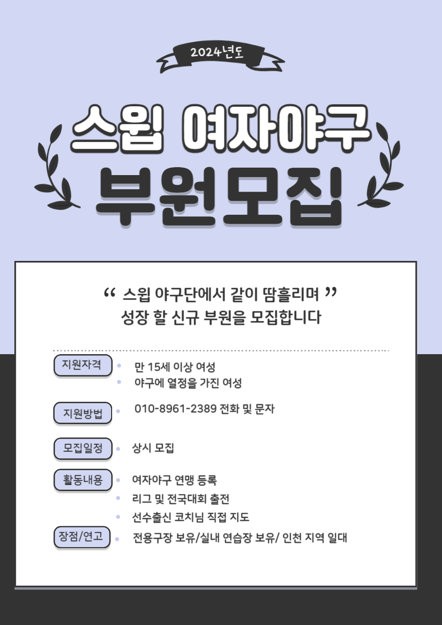인천,김포,부천 지역 일대 여자야구 모집합니다