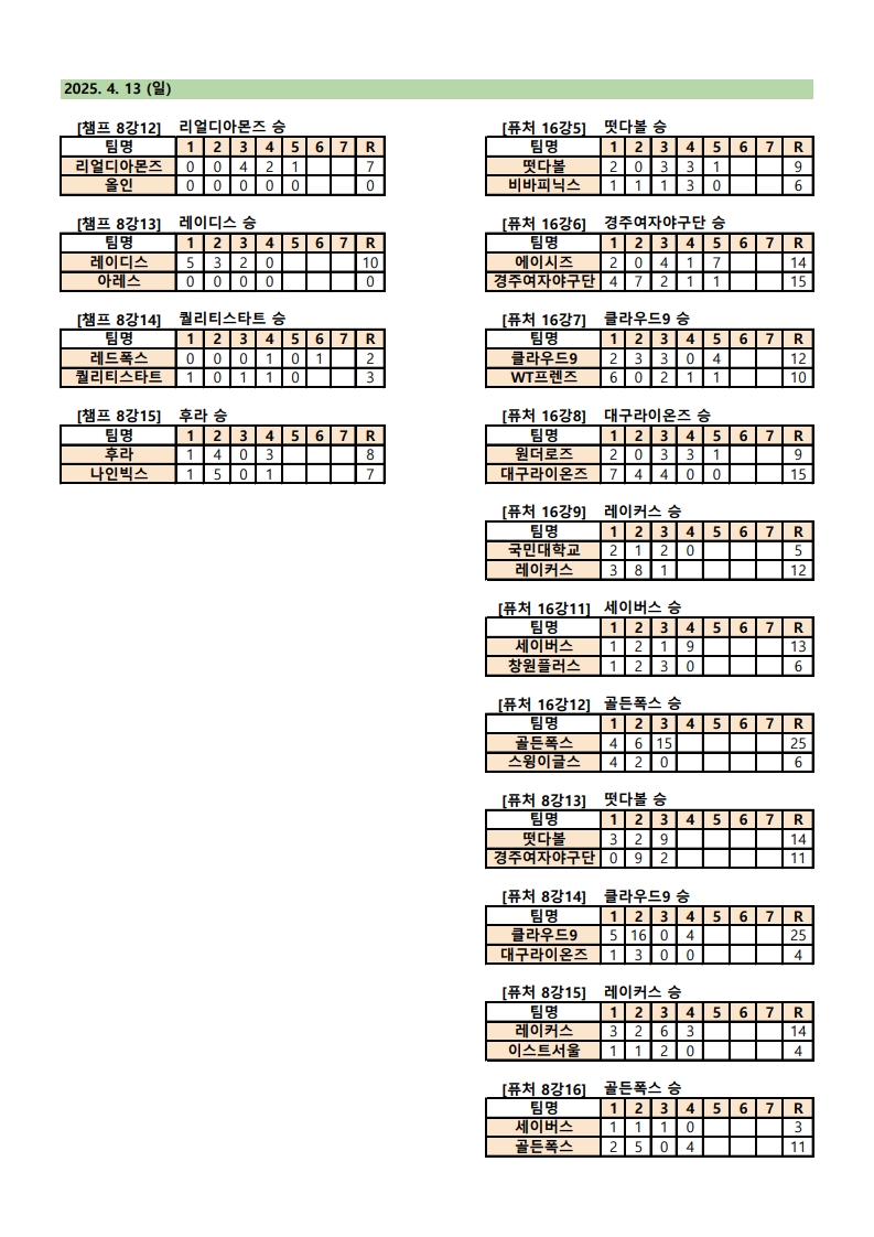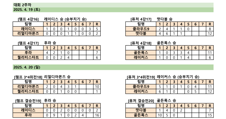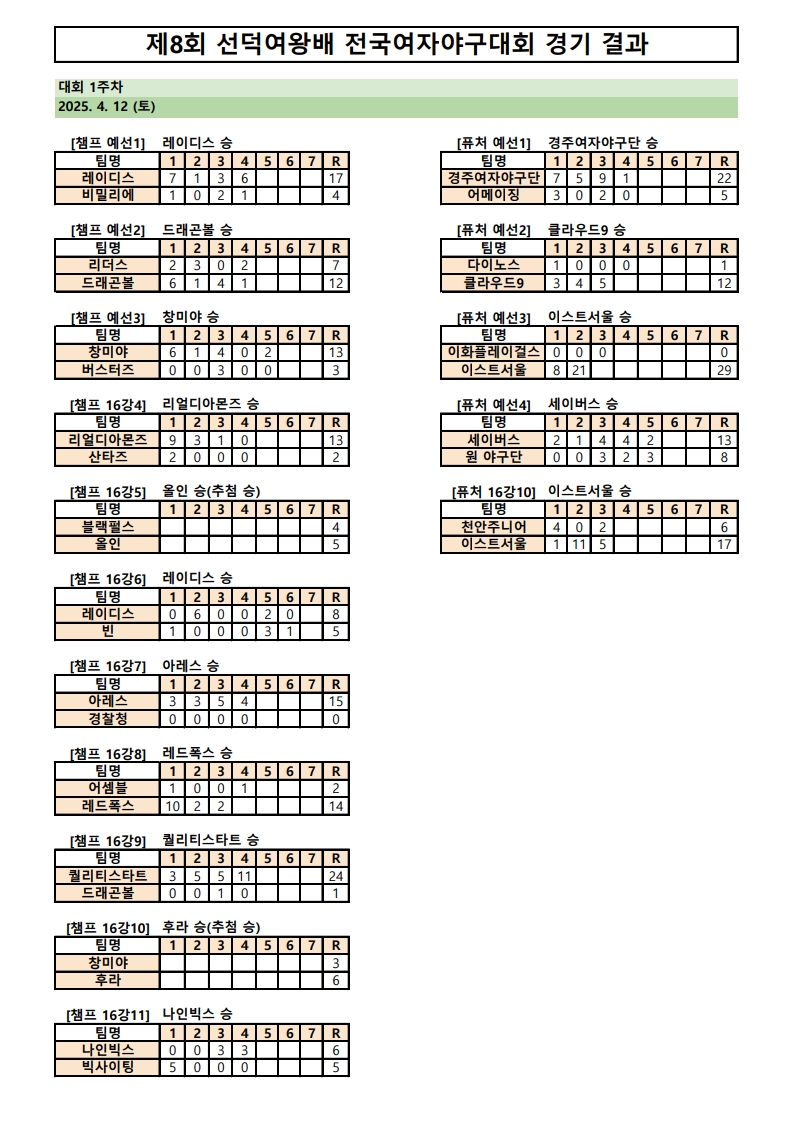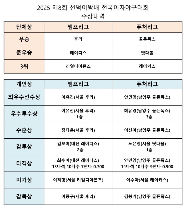 2025 제8회 선덕여왕배 전국여자야구대회 최종결과
